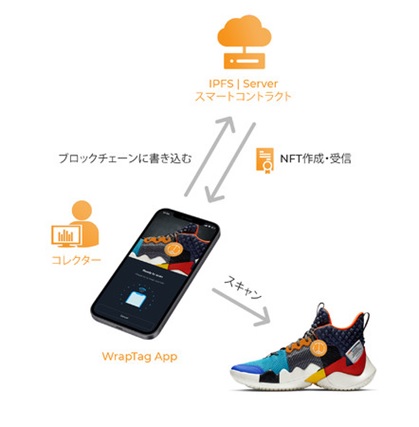 WrapTagアプリは分散型のウェブアプリケーションで、これを利用してスマートフォンでNFC WrapTagをスキャンすることにより、ユーザーは証明書NFTを挿入することが出来ます。 それぞれの証明書NFTは、ブロックチェーン上に作成者のアドレスや取引履歴が永続的に残るため、追跡可能であり、偽造されることはありません。